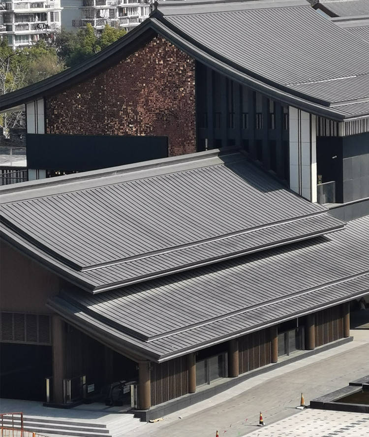 多用于小跨度坡度>15°屋面,亦可以用于墙面或吊顶,基于钛锌板材柔韧性好、耐腐蚀性强、色彩稳定、机械加工性好等特点,特别适用于造型复杂、档次要求高的建筑体围护,如穹顶、弧形、扇形等异形屋面,如艺术馆、别墅、纪念馆、会所、博物馆等建筑屋面系统。